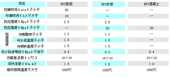 (一)、KPI耐酸耐熱系列防腐材料的性能及特點